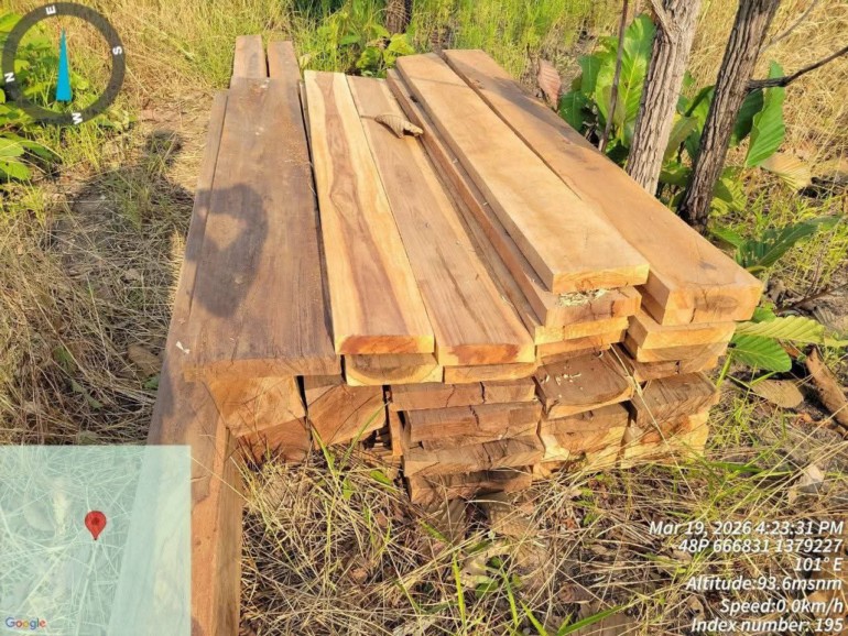 ប្រភេទឈើលេខ១ និង លេខ៣ (ប្រភេទឈ្លីស និងល្វេរ) សរុបប្រមាណ ៣១៩ សន្លឹក/ដុំ និង សសរឈើ ចំនួន ៩ ដើម។