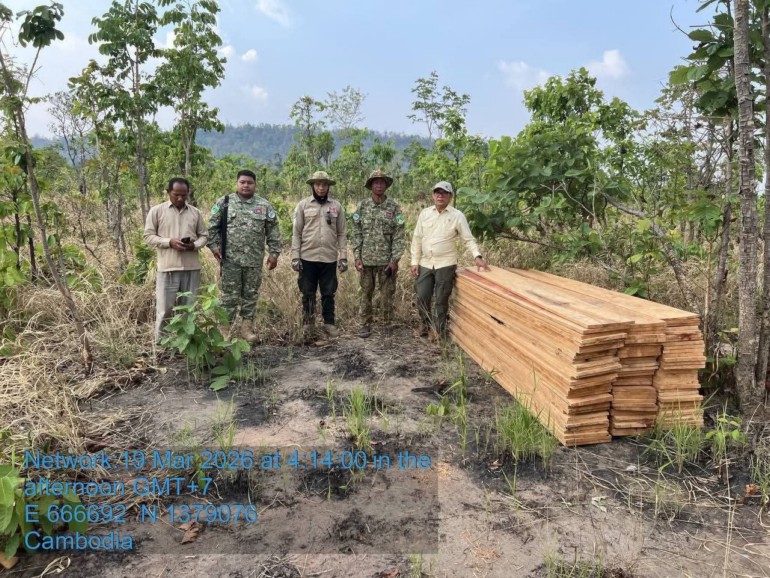 លោក ហាក់ វិបុល ប្រធានមន្ទីរបរិស្ថានខេត្តមណ្ឌលគិរី ចូលរួមសហការជាមួយកម្លាំងស្នាក់ការស្រែរនាម នៅភូមិសាស្ត្រទឹកដីខេត្តក្រចេះ នេះជាបទសហការឆ្លងខេត្ត ពាក់ព័ន្ធនៃការបង្ក្រាប
