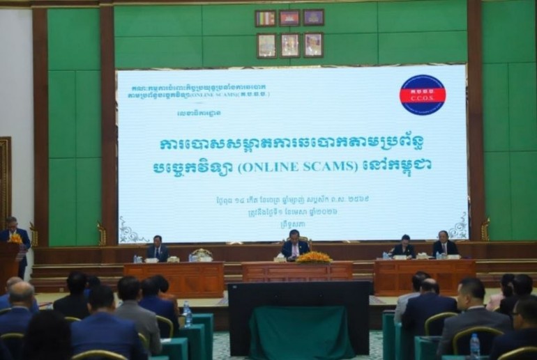 ឯកឧត្តមបានជម្រាបជូនអង្គប្រជុំបន្ថែមថា ដើម្បីពង្រឹងប្រសិទ្ធភាព និងនិរន្តរភាពសម្រាប់ក្នុងការប្រឆាំងអំពើឆបោកអនឡាញនេះ រាជរដ្ឋាភិបាលកម្ពុជាបានផ្តួចផ្តើមការរៀបចំសេចក្តីព្រាងច្បាប់ស្តីពីការប្រឆាំងបទល្មើសបច្ចេកវិទ្យា ដែលត្រូវបានរដ្ឋសភាអនុម័តកាលពីថ្ងៃទី៣០ ខែមីនា ឆ្នាំ២០២៦ កន្លងទៅនេះ ហើយនឹងត្រូវឆ្លងព្រឹទ្ធសភានៅថ្ងៃទី៣ ខែមីនា ខាងមុខនេះ។
