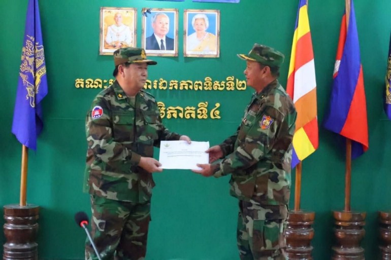 ខេត្តឧត្តរមានជ័យ៖ កាលពីថ្ងៃទី៣ ខែមេសា ឆ្នាំ២០២៦ ឯកឧត្តម នាយឧត្តមសេនីយ៍ ឥត សារ៉ាត់ អគ្គមេបញ្ជាការរង នាយសេនាធិការចម្រុះ នៃកងយោធខេមរភូមិន្ទ តំណាងដ៏ខ្ពង់ខ្ពស់ ឯកឧត្តម នាយឧត្តមសេនីយ៍ ទៀ សីហា ឧបនាយករដ្ឋមន្ត្រី រដ្ឋមន្ត្រីក្រសួងការពារជាតិ បានអញ្ជើញចុះសួរសុខទុក្ខ និងជូនពរជ័យ សិរីសួស្តីដល់យោធិនដែលកំពុងបំពេញបេសកកម្មដ៏ឧត្តុង្គឧត្តមក្នុងការការពារបូរណភាពទឹកដី នៅសមរភូមិមុខតាមបណ្តោយព្រំដែនកម្ពុជា-ថៃ នៅទិសទី២ របស់យោធភូមិភាគទី៤ ក្នុងភូមិសាស្ត្រខេត្តឧត្តរមានជ័យ នាឱកាសបុណ្យចូលឆ្នាំថ្មី ឆ្នាំមមី អដ្ឋស័ក ពុទ្ធសករាជ ២៥៧០ ដែលនឹងឈានមកដល់នៅពេលខាងមុខ។