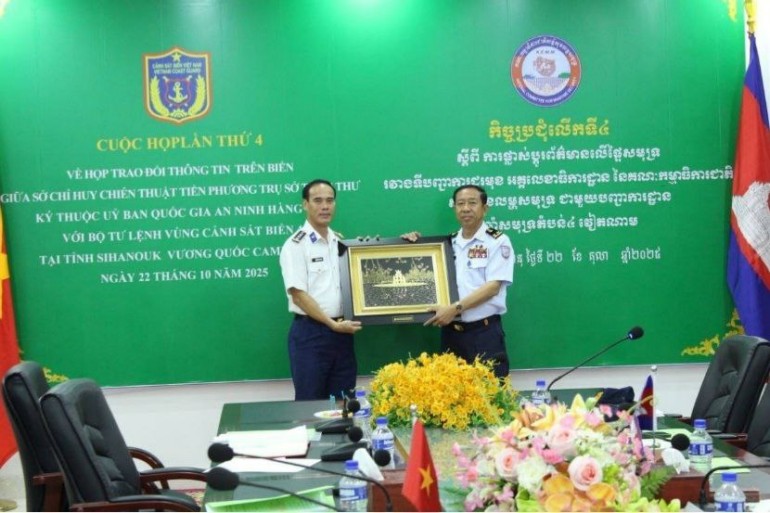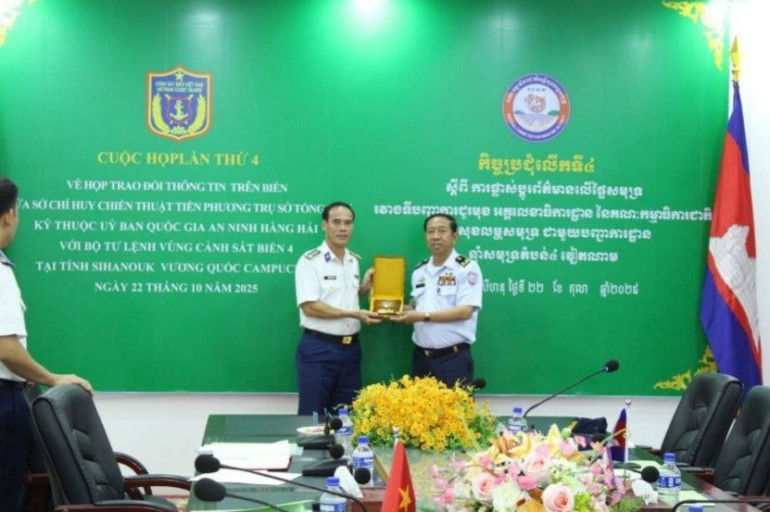 នៅរសៀលថ្ងៃពុធទី២២ ខែតុលា ឆ្នាំ២០២៥ អង្គភាពទីបញ្ជាការជួរមុខ អគ្គលេខាធិការដ្ឋាន នៃគណៈកម្មាធិការជាតិសន្តិសុខលម្ហសមុទ្រ បានបើកកិច្ចប្រជុំលើកទី៤ ស្តីពីការទំនាក់ ទំនងកិច្ចសហប្រតិបត្តិការលើផ្ទៃសមុទ្ររវាងទីបញ្ជាការជួរមុខ អគ្គលេខាធិការដ្ឋាននៃគណៈកម្មាធិការជាតិសន្តិសុខលម្ហសមុទ្រ ជាមួយបញ្ជាការដ្ឋានឆ្មាំសមុទ្រតំបន់៤ វៀតណាមក្រោមអធិបតីភាពឧត្តមនាវីទោ លី ហួត មេបញ្ជាការ ទីបញ្ជាការជួរមុខ អគ្គលេខាធិការដ្ឋាន នៃគណៈកម្មាធិការជាតិសន្តិសុខលម្ហសមុទ្រ និងលោកវរសេនីយ៍ឯក ងៀន វណ្ណចាញ់ មេបញ្ជាការរង បញ្ជាការដ្ឋានឆ្មាំសមុទ្រតំបន់៤វៀតណាម។