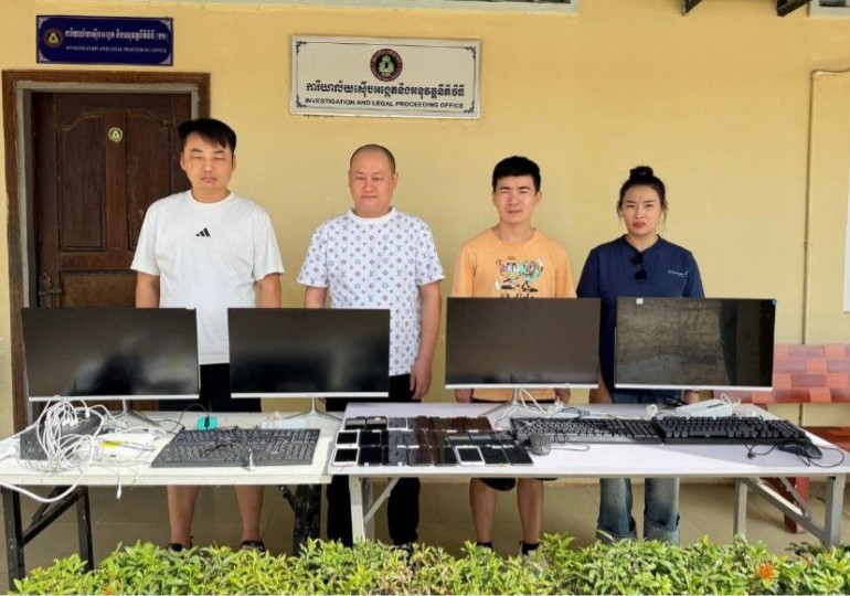 ខេត្តសៀមរាប៖ កម្លាំងចម្រុះនៃគណ:បញ្ជាការឯកភាពរដ្ឋបាលខេត្តសៀមរាប ដោយមានការសម្របសម្រួលផ្លូវច្បាប់ពីព្រះរាជអាជ្ញារង នៃអយ្យការអមសាលាដំបូងខេត្តសៀមរាបនៅថ្ងៃទី២៤ ខែតុលា ឆ្នាំ២០២៥ បានចុះពិនិត្យ និងបង្ក្រាបករណីឆបោកតាមប្រព័ន្ធបច្ចេកវិទ្យា នៅចំណុចផ្ទះវីឡាជួល ស្ថិតនៅភូមិសាលាកន្សែង សង្កាត់ស្វាយដង្គំ ក្រុងសៀមរាប ដោយបានឃាត់ខ្លួនជនសង្ស័យជាបុរសជនជាតិចិនចំនួន០៣នាក់ ១-ឈ្មោះ XIAO SONG ២-ឈ្មោះ HAN JIAJIA ៣-ឈ្មោះ QIN CILONG និងស្ត្រីជនជាតិវៀតណាមចំនួន០១ នាក់ឈ្មោះ LUONG THI QUE ។