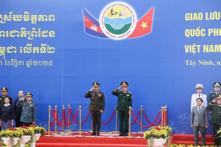 នៅព្រឹកថ្ងៃទី១៣ ខែវិច្ឆិកា ឆ្នាំ២០២៥ ឯកឧត្តម នាយឧត្តមសេនីយ៍ ទៀ សីហា ឧបនាយករដ្ឋមន្ត្រី រដ្ឋមន្ត្រីក្រសួងការពារជាតិ បានដឹកនាំគណៈប្រតិភូក្រសួងការពារជាតិធ្វើទស្សនកិច្ចផ្លូវការ និងចូលរួមជំនួបប្រាស្រ័យមិត្តភាព ការពារព្រំដែន ថ្នាក់រដ្ឋមន្ត្រីការពារជាតិ កម្ពុជា-វៀតណាម លើកទី២ ។