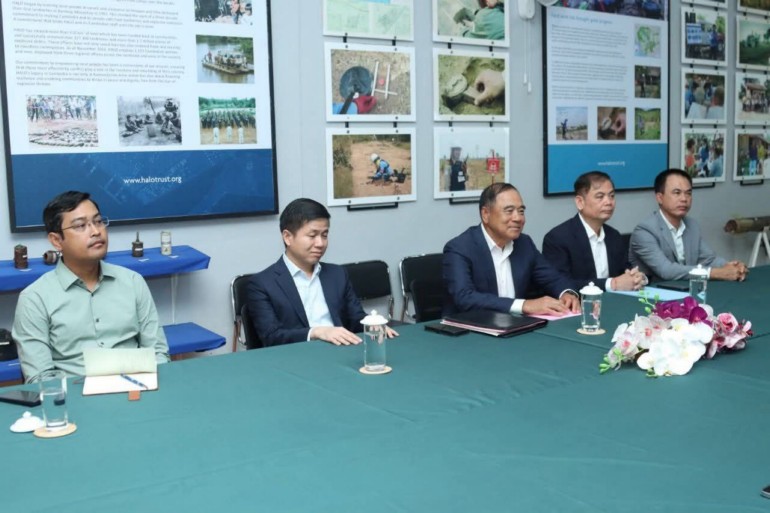 សៀមរាប៖ នាថ្ងៃទី២៦ ខែវិច្ឆិកា ឆ្នាំ២០២៥ នៅទីស្នាក់ការអង្គការ Halo Trust ខេត្តសៀមរាប ឯកឧត្តមបណ្ឌិត លី ធុជ ទេសរដ្ឋមន្ត្រី និងជាអនុប្រធានទី១ អាជ្ញាធរមីន បានទទួលស្តាប់នូវសេចក្តីរាយការណ៍របស់អង្គការ Halo Trust អំពីលទ្ធផលសម្រេចបានក្នុងឆ្នាំ២០២៥ និងផែនការបន្តសម្រាប់ឆ្នាំ២០២៦។