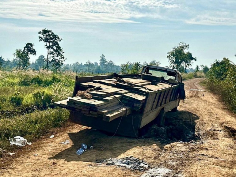 ក្រោយការរាយការមួយរយៈពេលខ្លី កម្លាំងប្រដាប់អាវុធនិងមន្ត្រីជំនាញក៍បានចុះរឹបអូសវត្ថុតាងរថយន្តសាំយ៉ុងកែច្នៃ ក្បាលពណ៌ស គ្មានស្លាកលេខចំនួន០១ គ្រឿង ដឹកជញ្ជូនឈើអារលេខ២ (ឈើទាល)ចំនួន ៩៣ សន្លឹក ស្មើនឹង៥,២៧៩ម៉ែត្រត្រីគុណដោយគ្មានលិខិតអនុញ្ញាតពីរដ្ឋបាលព្រៃឈើ និង ពុំមានម្ចាស់ទទួលខុសត្រូវ នៅត្រង់ចំណុចនិយាមកា (598301-1422458) ស្ថិតក្នុងភូមិទន្សោងធ្លាក់ ឃុំកំពង់ចាមស្រុកសំបូរ ខេត្តក្រចេះ។