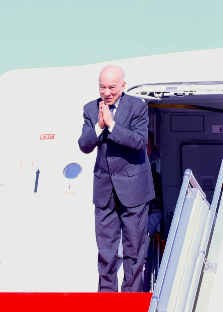ព្រះករុណាជាអម្ចាស់ជីវិតលើត្បូង ព្រះបាទសម្តេចព្រះបរមនាថ នរោត្តម សីហមុនី ព្រះមហាក្សត្រ នៃព្រះរាជាណាចក្រកម្ពុជា ជាទីសក្ការៈដ៏ខ្ពង់ខ្ពស់បំផុត ព្រះអង្គស្តេចយាងចាកចេញពីអាកាសយានដ្ឋានអន្តរជាតិតេជោ នាព្រឹកថ្ងៃទី០១ ខែធ្នូ ឆ្នាំ២០២៥ ដើម្បីយាងទៅចូលរួមកម្មវិធី បណ្ឌិត្យសភាវិទ្យាសាស្ត្រ នៅទីក្រុងប៉ារីស សាធារណរដ្ឋបារាំង។