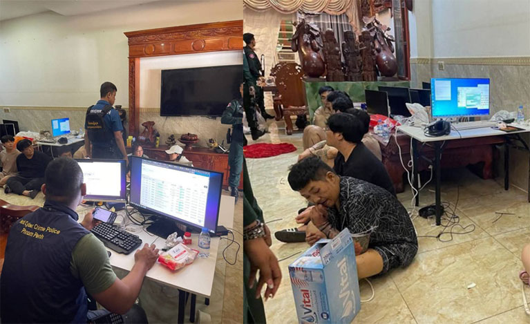 ភ្នំពេញ៖ ជនសង្ស័យចំនួន០៩នាក់ត្រូវបានកម្លាំងសមត្ថកិច្ចចម្រុះឃាត់ខ្លួនក្នុងប្រតិបត្តិការចុះត្រួតពិនិត្យឆែកឆេរ នៅផ្ទះលេខ១៤ ផ្លូវលេខ ១៣ ស្ថិតក្នុងបុរីពិភពថ្មីផ្លូវជាតិលេខ៥ សង្កាត់គីឡូម៉ែត្រ ៦ ខណ្ឌឫស្សីកែវ រាជធានីភ្នំពេញក្រោមការសង្ស័យថាមានការលបលួចប្រព្រឹត្តបទល្មើសឆបោកតាមប្រព័ន្ធបច្ចេកវិទ្យា Online Scam។