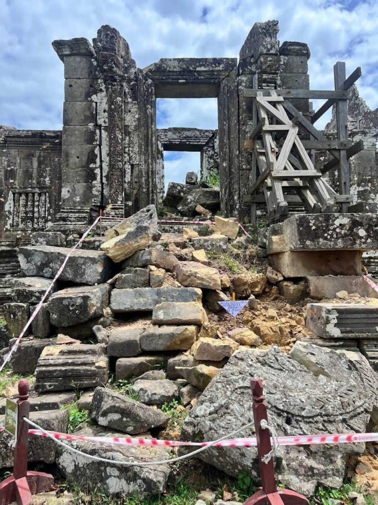 ប្រាង្គប្រាសាទព្រះវិហារ សម្បត្តិវប្បធម៌កេរមរតកដូនតាខ្មែរជាបេតិកភណ្ឌពិភពលោករបស់អង្គការយូណេស្កូ ត្រូវបានរងការខូចខាតដោយសារតែសកម្មភាពឈ្លានពានប្រដាប់អាវុធរបស់យោធាថៃ មកលើទឹកដីកម្ពុជា កាលពីខែកក្កដា និងនៅខែធ្នូ ឆ្នាំ២០២៥ នេះ។