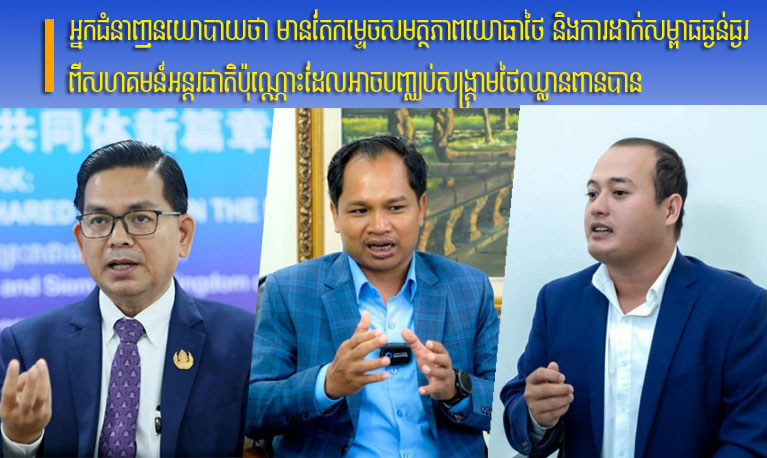 ភ្នំពេញ៖ អ្នកជំនាញវិទ្យាស្ត្រនយោបាយកម្ពុជា បានលើកឡើងថា មានតែការឆ្លើយតបដោយប្រើកម្លាំងយោធាយ៉ាងចាស់ដៃដើម្បីកម្ទេចសមត្ថភាពកម្លាំងខ្មាំងឈ្លានពានថៃ និងការប្រើយន្តការការទូតនិងច្បាប់អន្តរជាតិដើម្បីដាក់សម្ពាធយ៉ាងធ្ងន់ធ្ងរលើថៃប៉ុណ្ណោះ ទើបអាចបញ្ឈប់សង្គ្រាមឈ្លានពានរបស់ថៃលើដែនអធិបតេយ្យភាពកម្ពុជាបាន។