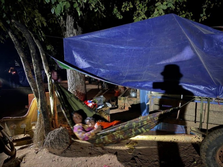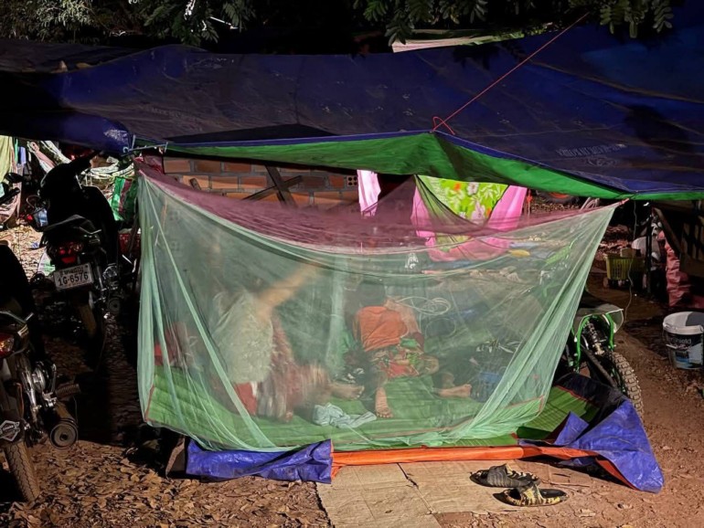 បន្ទាយមានជ័យ៖ នៅជំរំស្នាក់នៅបណ្តោះអាសន្នថ្មីមួយកន្លែងទៀត ដែលស្ថិតនៅក្នុងបរិវេណ វត្តគោល ស្រុកចុងកាល់ ស្ថានភាពសន្តិសុខនៅតែជាក្ដីបារម្ភ ដោយស្នូរគ្រាប់ផ្លោងនៅតែបន្តបន្លឺឡើងជារឿយៗនៅក្បែរតំបន់នោះ។